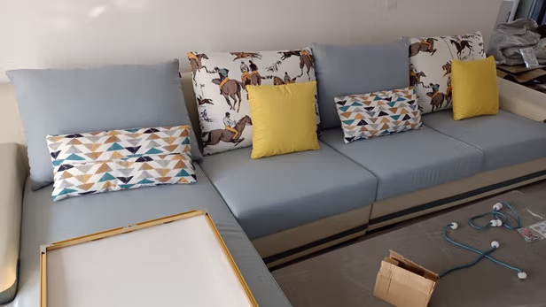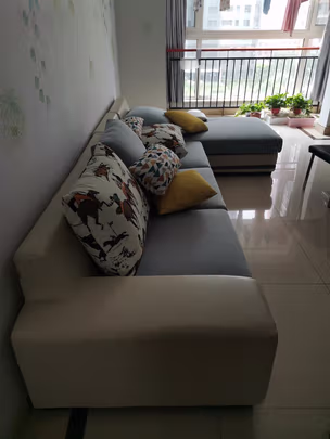 首先这个外观款式比较简单干净,清爽,和我家装修很搭。材质质感也不错,挑了很久,挑了全友这款沙发,价格合适,性价比很高。新沙发没什么味道,放心。家人说坐着很舒服,家人很喜欢。第三方物流服务很到位,大冷天来送货上门安装。总之,比较满意的一次购物。